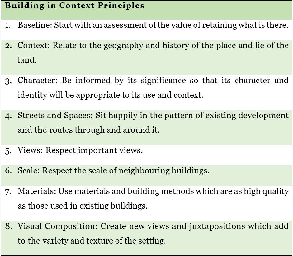 Table 1: Principles for Good Design. English Heritage and Commission for Architecture and the Built Environment, ‘Building in context: new development in historic areas.’
